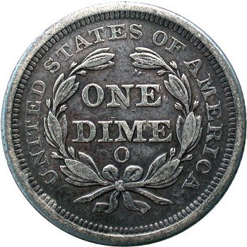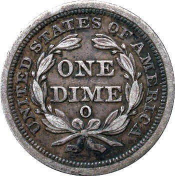 Reverse: Large Thin O, Reverse of 1852 (A), Cracked and Rusted Die