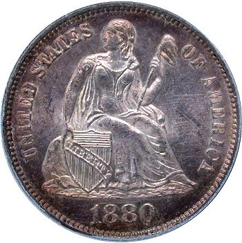 Obverse: Business Strike, Medium Date, Slight Upward Slope, Broken 18(80), Doubled (S)TATES