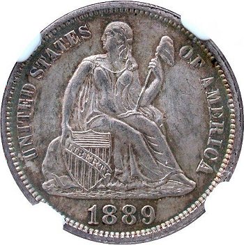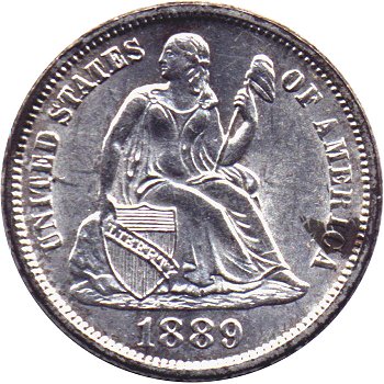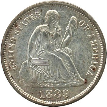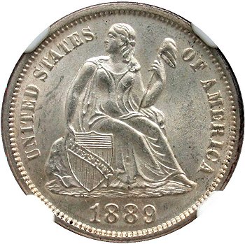Obverse: Repunched Date (1889/1889), Misplaced Digit By Scroll, Medium Level Date, Closed 9