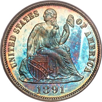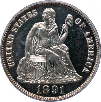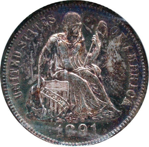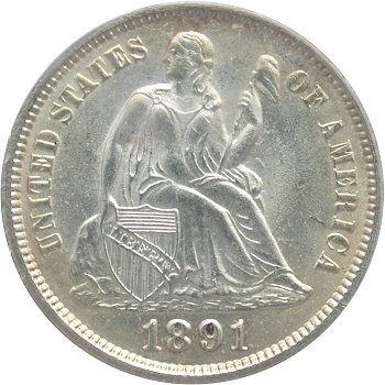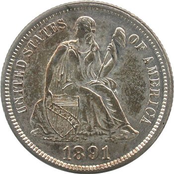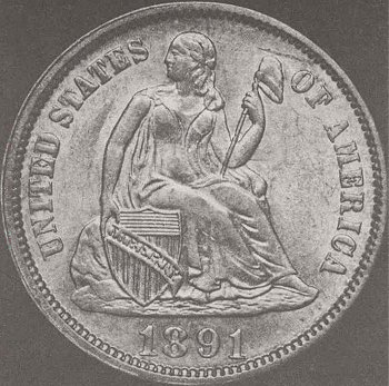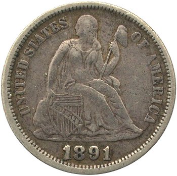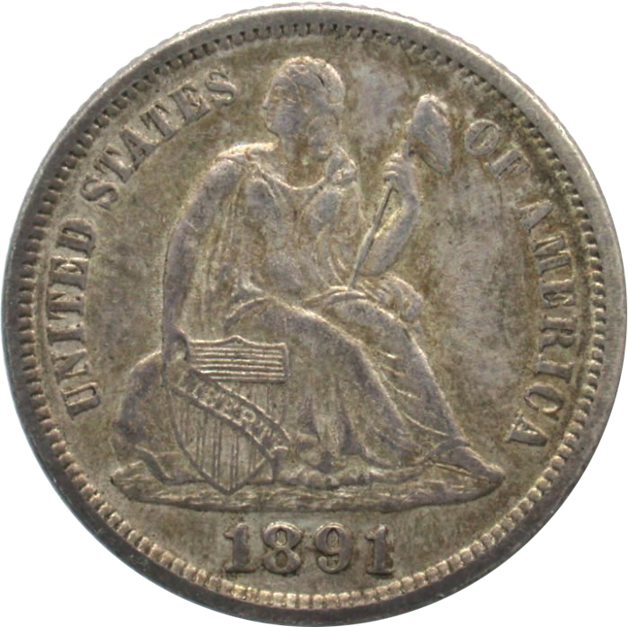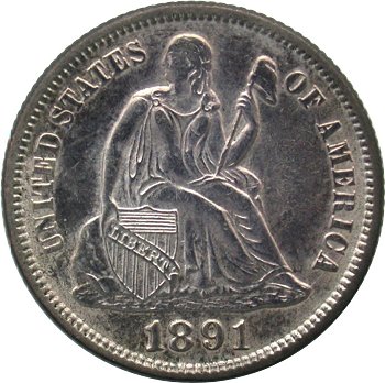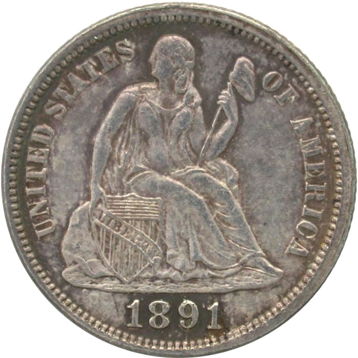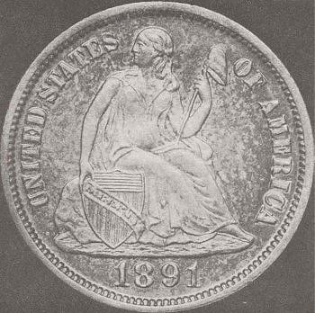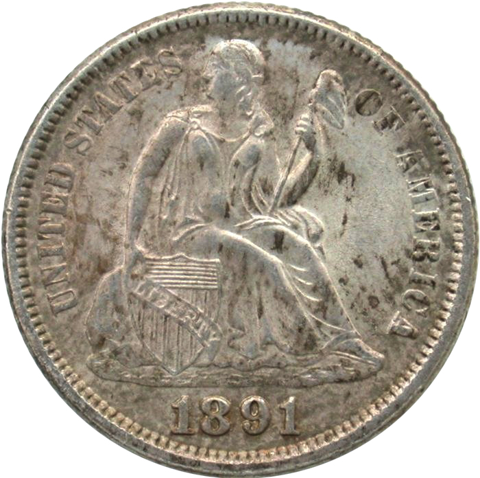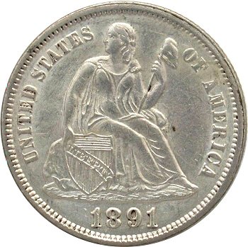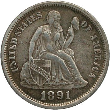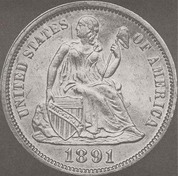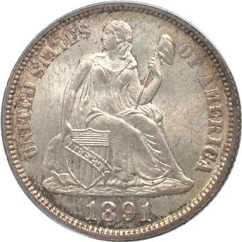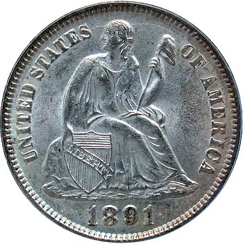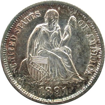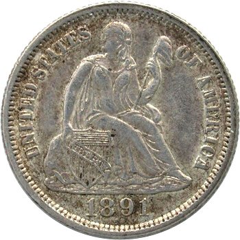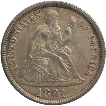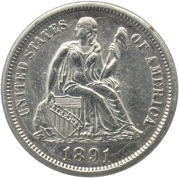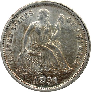 Obverse: Repunched 1891, (Two Tailed 9), Medium Level Date